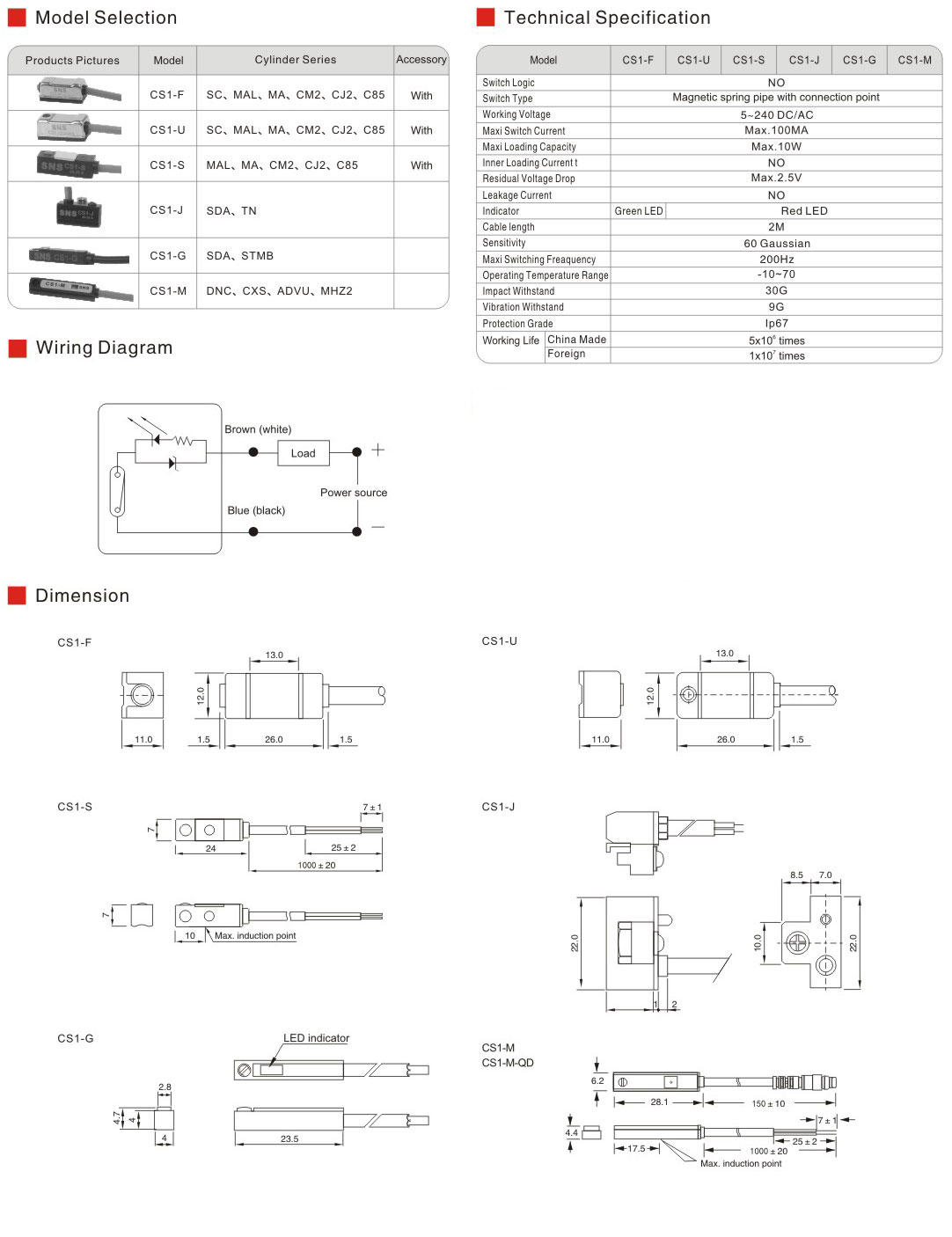 CS1 Series IP67 Magnetic Switch For Cylinder Item No.: CS1 Category: Cylinder Accessories Type: Cylinder Parts Packaging:Standard Export Port:Ningbo/Shanghai Place of Origin:Zhejiang,China Inquiry PRODUCT DETAIL CS1 Series IP67 Magnetic Switch For Cylinder Share: PREVIOUS:FJ10 Pneumatic Cylinder Accessories Floating Joint NEXT:D Series Magnetic Switch for Pneumatic Cylinder Related Products FJ10 Pneumatic Cylinder Accessories Floating Joint D Series Magnetic Switch for Pneumatic Cylinder SC/SU Series Cylinder Parts Cylinder Parts